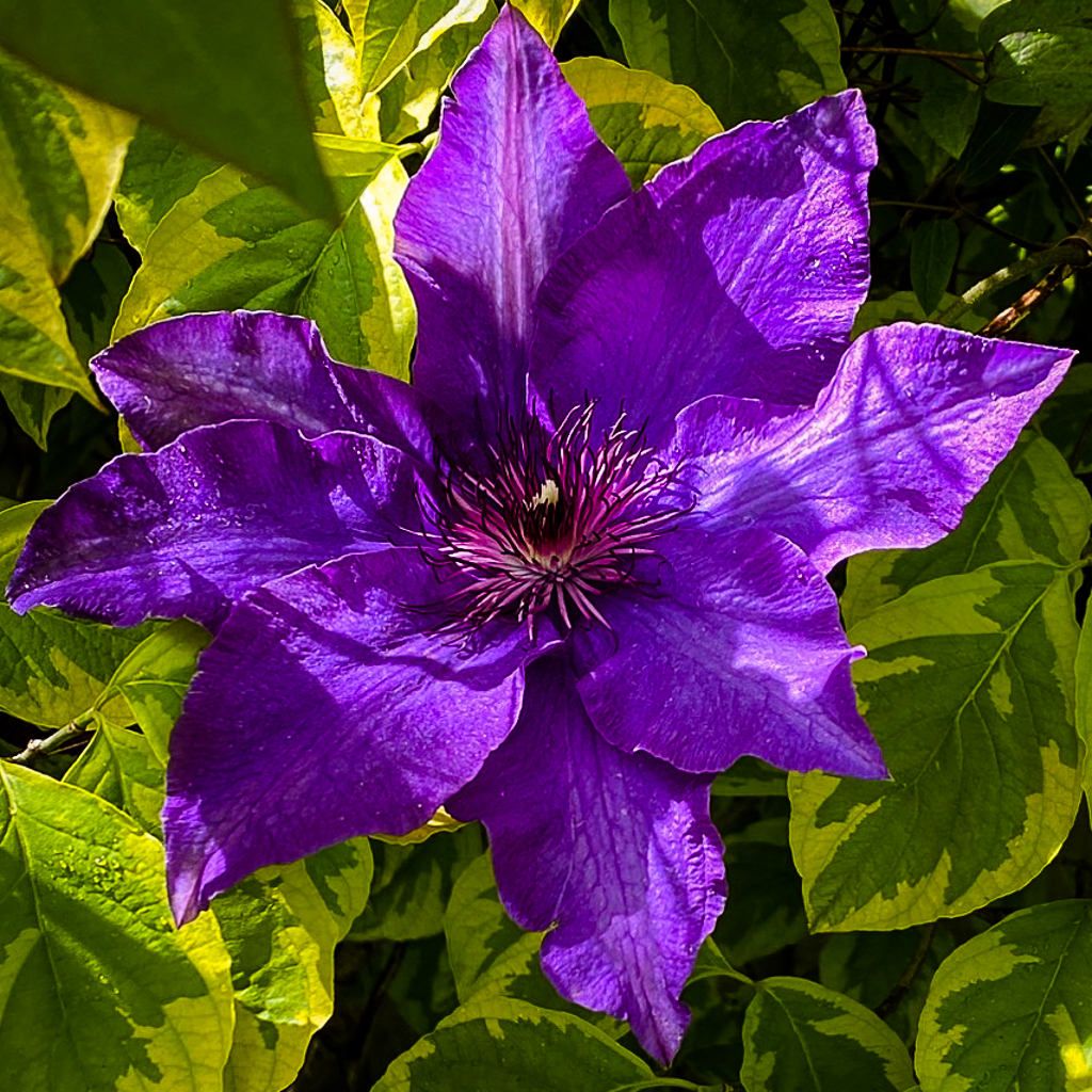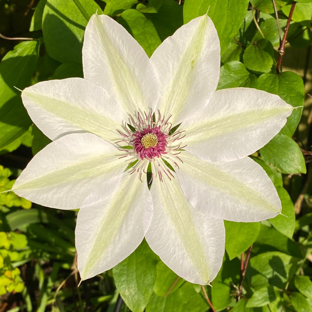 The ever elegant Clematis ‘Miss Bateman’ – Jan Mundy (brilliant photo!)